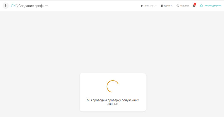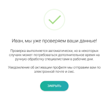 Вы увидите на экране сообщение об успешном формировании договора и ожидании проверки (рис.).